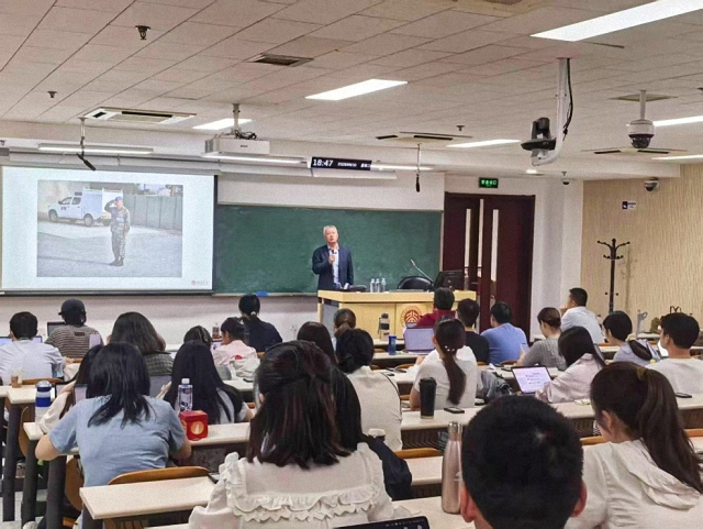 刘将军在讲座中结合自身实践经验,全面梳理了从职位竞选到实地履职的全过程,并深入介绍了联合国塞浦路斯维和部队的核心任务,包括监督停火线、管理缓冲区、开展人道主义救援以及推动政治斡旋与支持。他还通过分享日常工作中的实际案例,如内部纠纷与突发事件处理,生动展现了维和行动的复杂性与挑战。刘将军特别强调跨文化沟通的重要性,指出不同国家军队有着独特的传统与背景,在联合指挥中必须加强交流与理解,才能增强凝聚力、提升行动效能。最后,他结合自身观察系统分析了联合国维和行动的现状与前景,并指出中国正处于从全球治理的参与者向引领者转变的进程中,勉励青年学子努力学习,把握时代机遇,为联合国维和行动贡献中国方案。