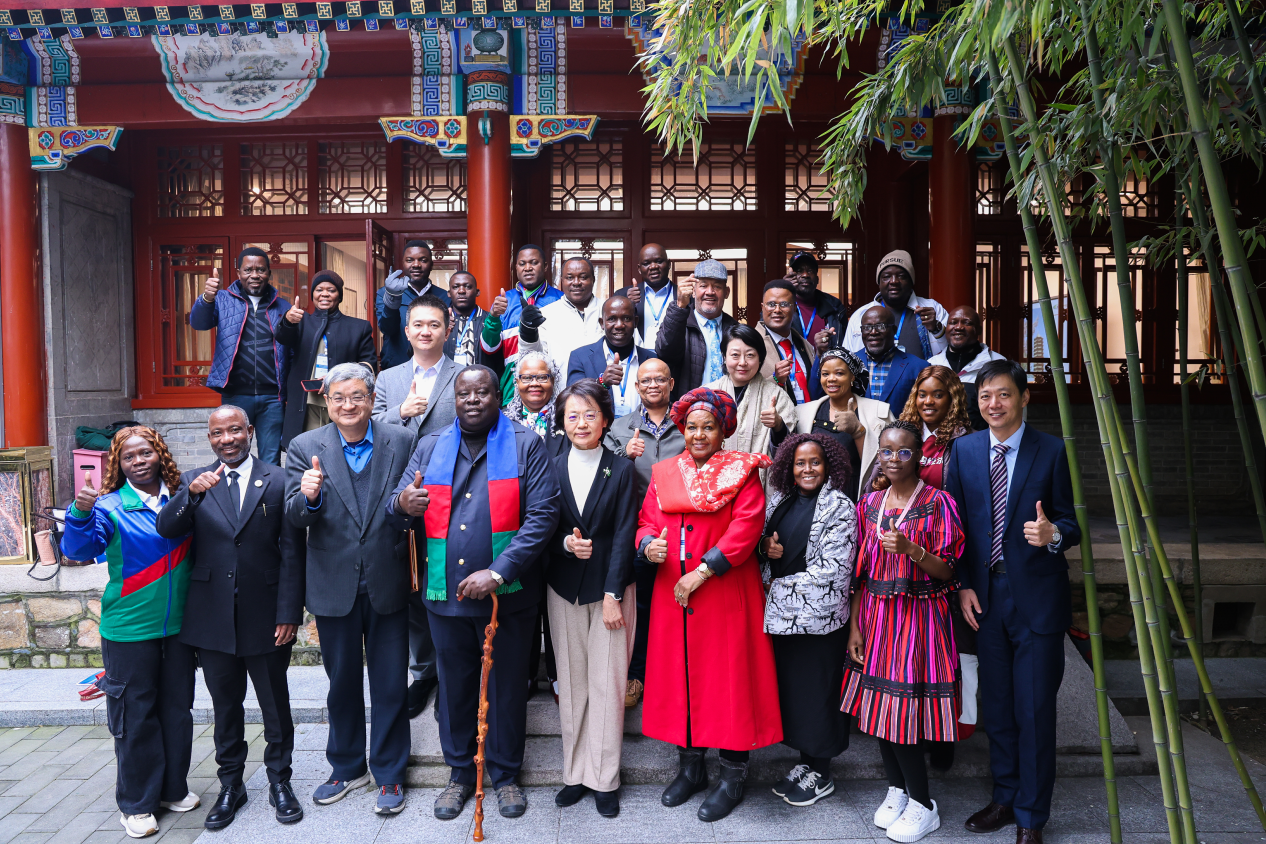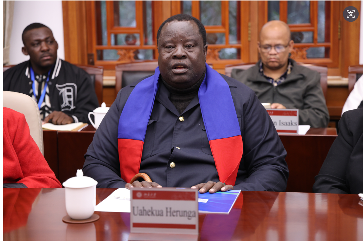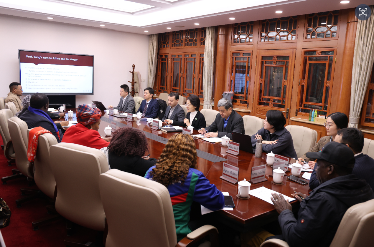 2025年12月18日上午,纳米比亚执政党西南非洲人民组织(简称人组党)副总书记乌海库阿·海隆加(Uahekua Herunga)率领干部代表团一行23人访问北京大学,中联部四局何晨青处长等陪同,与非洲研究中心师生在临湖轩西厅展开圆桌座谈,主题为“大变局下的中非关系”,非洲研究中心多位学者以及在政府管理学院攻读硕士和在国家发展研究院攻读博士的3位纳米比亚学生一同参加。