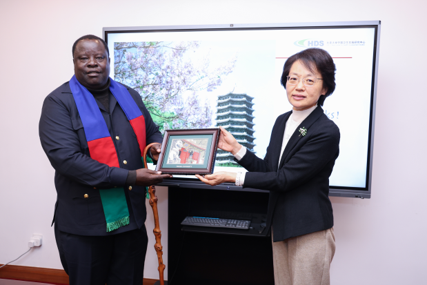 非洲研究中心主任刘海方副教授首先作致欢迎辞并介绍北京大学非洲研究的历史沿革及中心的宗旨使命、以及北大与纳米比亚的学术交往历史。海隆加副总书记继而分享了纳米比亚发展愿景、特别是高等教育亟待向中方学习以及对于全面提升双边关系的期待。北京大学国际关系学院查道炯教授、非洲研究中心副秘书长王进杰教授、中国卫生发展研究中心徐进博士分别以“中国对外经济关系中的关键矿产资源”、“技能生态与产业升级:政企校闭环合作”、“全球卫生融资危机下的全民健康覆盖”问题发表了对于纳米比亚发展和中纳双边合作的见解,获得纳方团成员积极响应和讨论,双方互动热烈。最后,刘海方主任作总结发言并代表学校向考察团赠送礼物,座谈会由非洲研究中心秘书长许亮副教授主持。