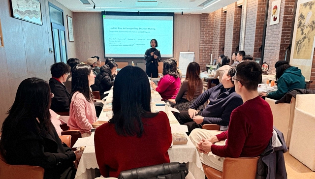 在温馨的破冰环节中,两校校友们很快打破了初识的拘谨,在欢声笑语中相互熟络。这种零距离的互动,不仅促进了心与心的沟通,更让在场的每一位参与者都感受到了跨越校际的情谊。庞珣教授随后以生动的测试互动引出讲座主题,系统阐述了AI技术在国际政治决策中的应用与潜在风险,其团队关于LLM智能体认知偏差的最新研究发现,引发了在场校友的浓厚兴趣与热烈讨论。